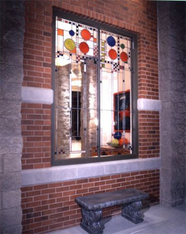In 1988, Oakbrook Esser Studios was commissioned by the owners of the Coonley Playhouse to reproduce all of the home's art glass which had been previously sold at auction. Working together with the Frank Lloyd Wright Foundation and The National Center for the Study of Frank Lloyd Wright. Our craftsmen were able to create exact replicas of each of the thirty-nine art glass windows using original the documentation from the early 1900's.